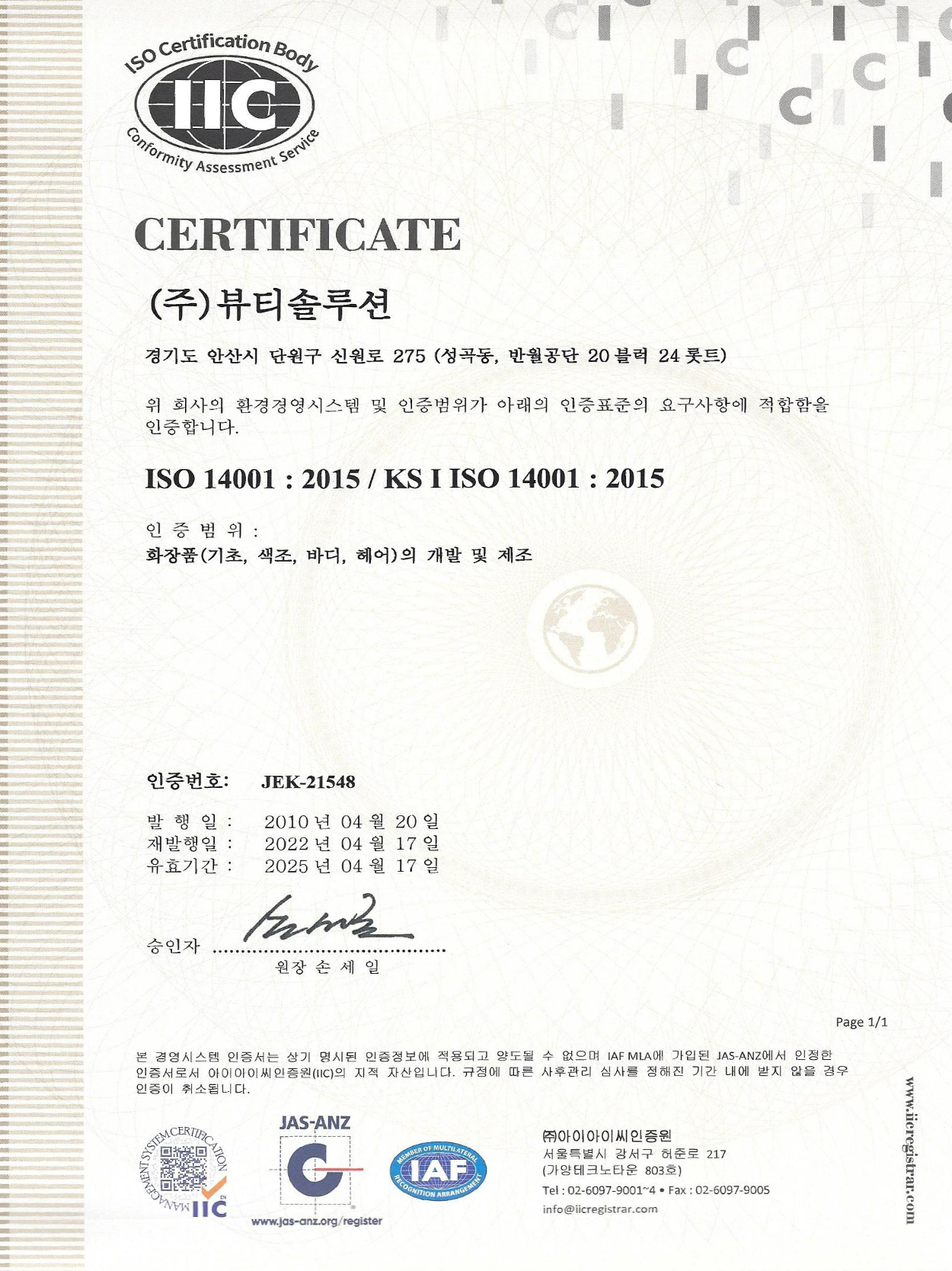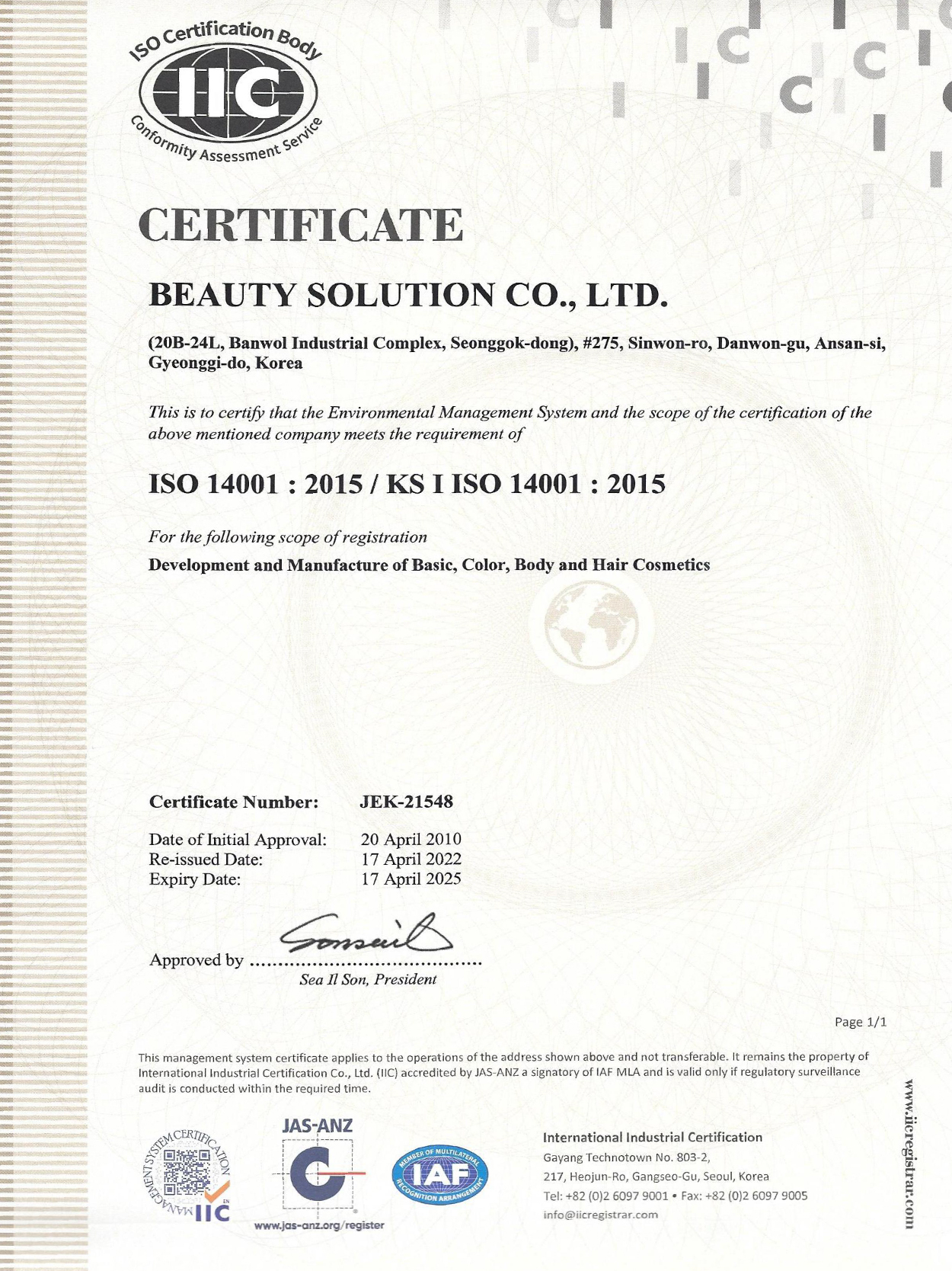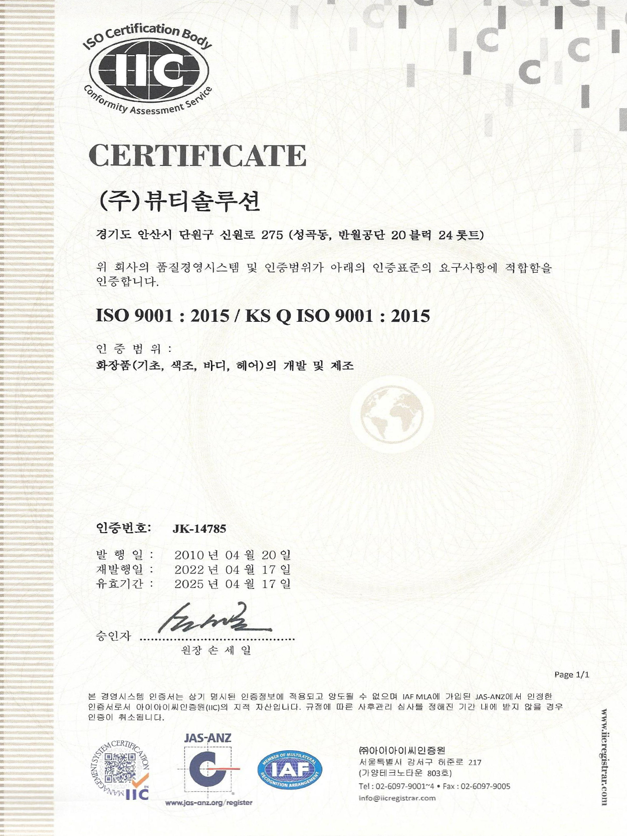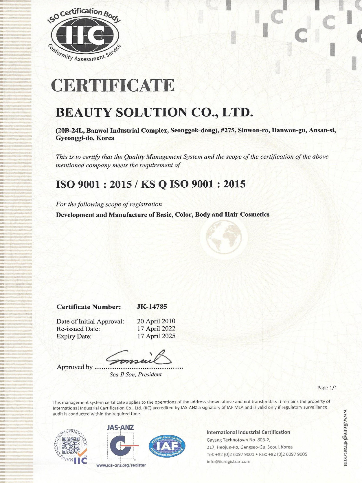 KS Certificate